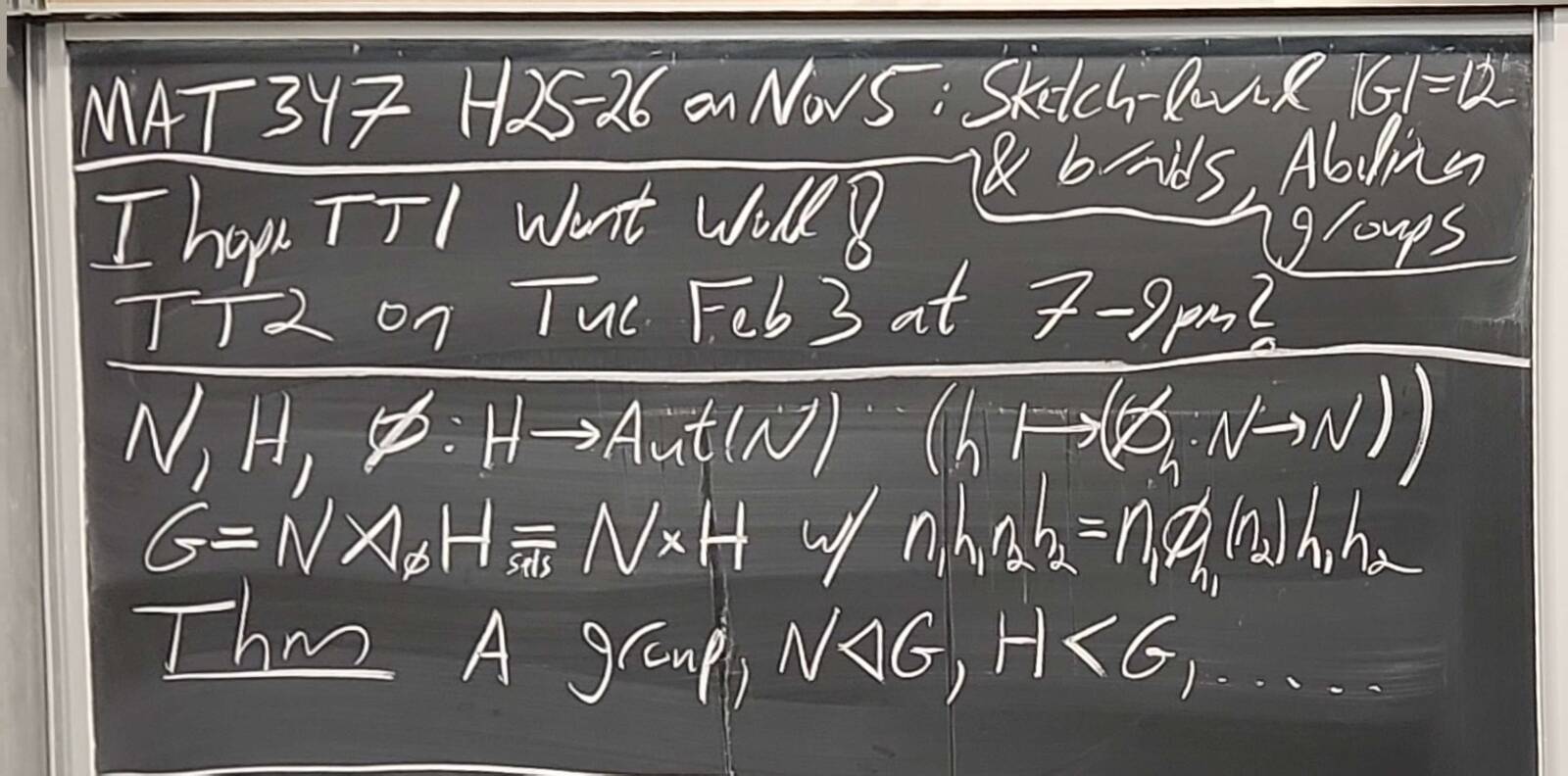 250917-122518: Sep 17 Hours 7-8: Homomorphisms, conjugations, kernels, images, normal subgroups (8).