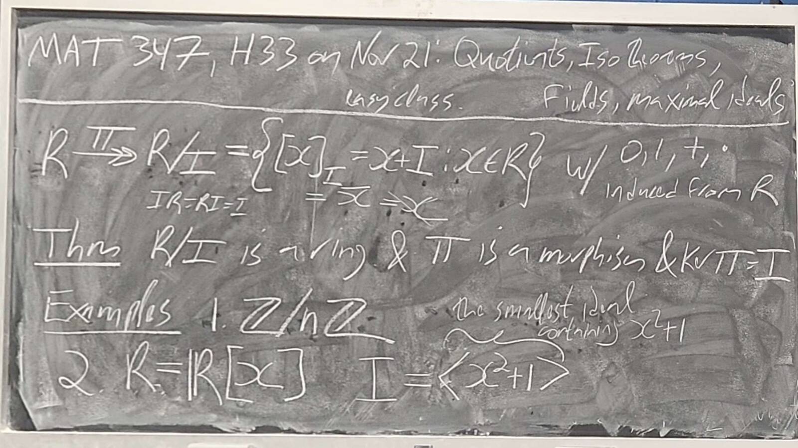 251121-134443: Nov 21 H33: Quotients, iso theorems, fields.